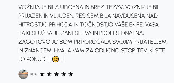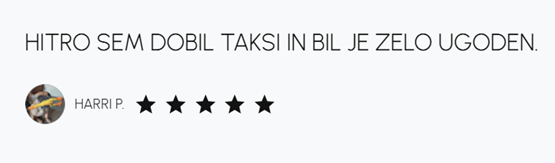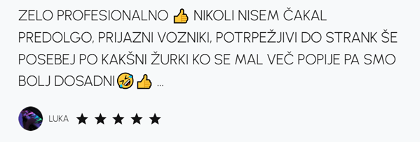 Na voljo smo Vam 24/7, da vas varno in hitro pripeljemo do željene destinacije. Naša vozila so udobna, čista in dobro vzdrževana, kar vam zagotavlja prijetno izkušnjo med vožnjo.